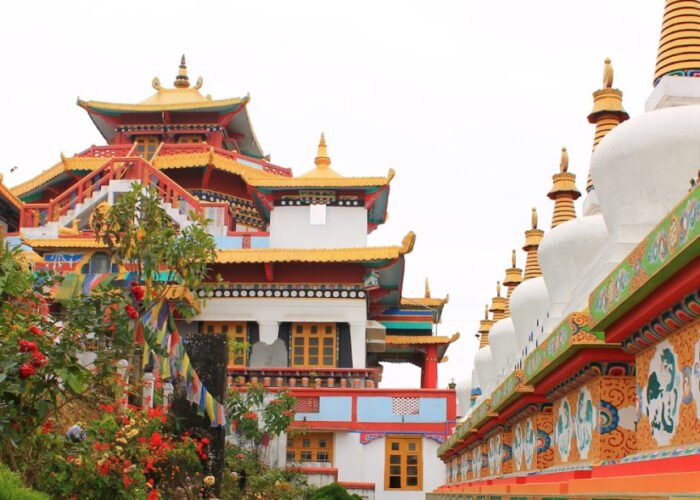 Today plan to see the special tourist attractions of Darjeeling. Early morning at around 4 am,  drive to Tiger Hill to watch the mesmerising sunrise over Mt. Kanchenjunga. En route visit Ghoom Monastery and Batasia Loop. Batasia Loop will come to you as a marvel of engineering and beauty where the Darjeeling Himalayan Railway makes a graceful spiral loop amidst landscaped gardens while Ghoom Monastery is one of the oldest monasteries in Darjeeling, that was built way back in 1850. It houses a magnificent 15-foot statue of Maitreya Buddha or the Future Buddha and preserves ancient Tibetan manuscripts. This place is a source of infinite peace and solitude. After breakfast at a local eatery, visit Himalayan Mountaineering Institute established in 1954 to honour Tenzing Norgay’s historic ascent of Mount Everest and Padmaja Naidu Zoological Park, which is a high-altitude zoo and a home to rare Himalayan wildlife such as the Snow Leopard, Red Panda, and Tibetan Wolf. also visit the Tenzing Rock, a natural rock face named after Tenzing Norgay and enjoy the serene ambience of Tea Garden. There are several tea estates that you visit, click pictures and buy the famous Darjeeling tea after tasting. Explore Japanese Temple & Peace Pagoda which are both peaceful attractions and strategically located that commands beautiful views. Later, transfer to NJP/Bagdogra for onward journey with happy memories of the Himalayas.